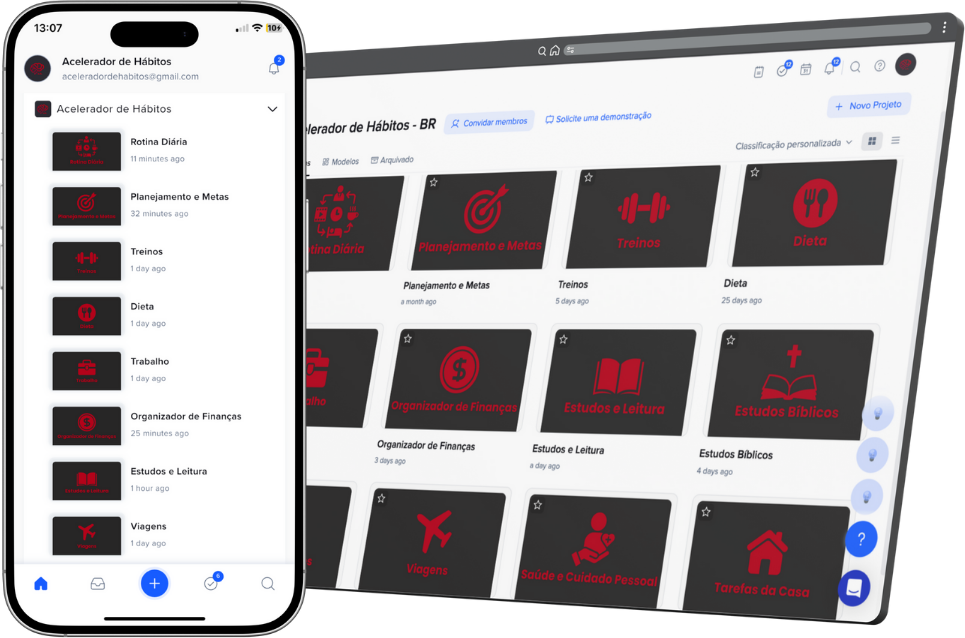 Criado por especialistas em produtividade, organização e hábitos sustentáveis, o Acelerador já ajudou milhares de pessoas a retomarem o controle do dia e conquistarem mais equilíbrio, sem depender de força de vontade ou motivação.